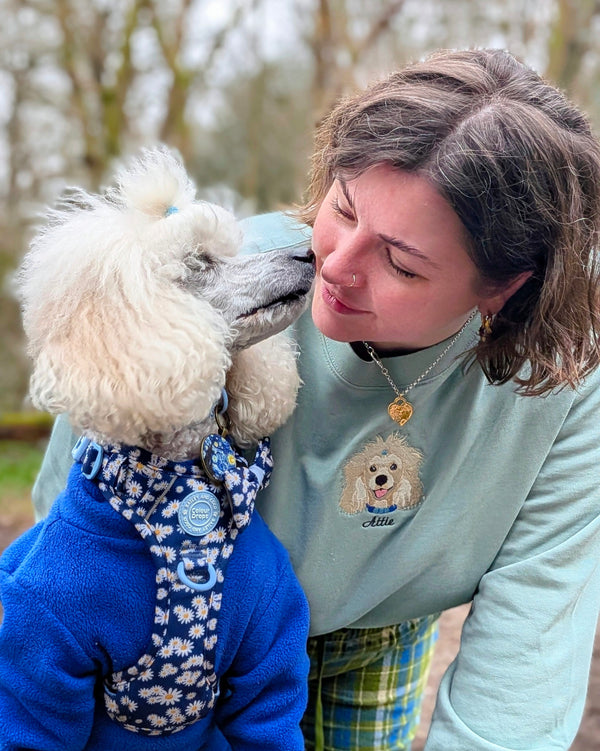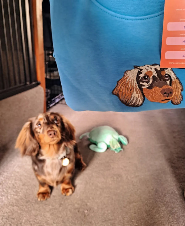 “Thrilled with the sweatshirt — lovely quality, soft inside, and the embroidery of my dog is gorgeous.”